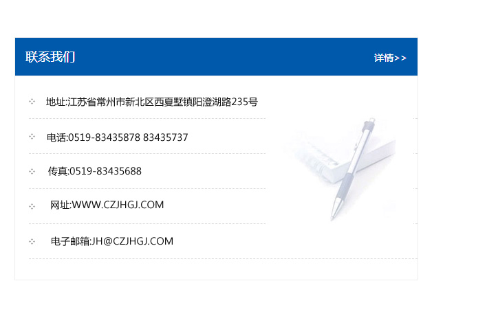 地址:常州市新北區友邦商務大廈1幢16、17層  電話:0519-85101652  傳真:0519-85112595  郵編:213022  網址:www_cz-jiayue_cn.hbhdgc.com  郵箱:xiajifengaa@163.com